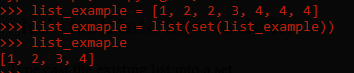 I am sure that doesn’t require any explanation. Still, if you don’t understand, what I am trying to do is to convert a python list to a python set, so that the duplicate elements are automatically removed. And then, we just convert it back to a list so that we can use it normally with the list functionalities. So, basically the removal of duplicate data is handled by the type casting. So we won’t have to worry about any kind of iterations.